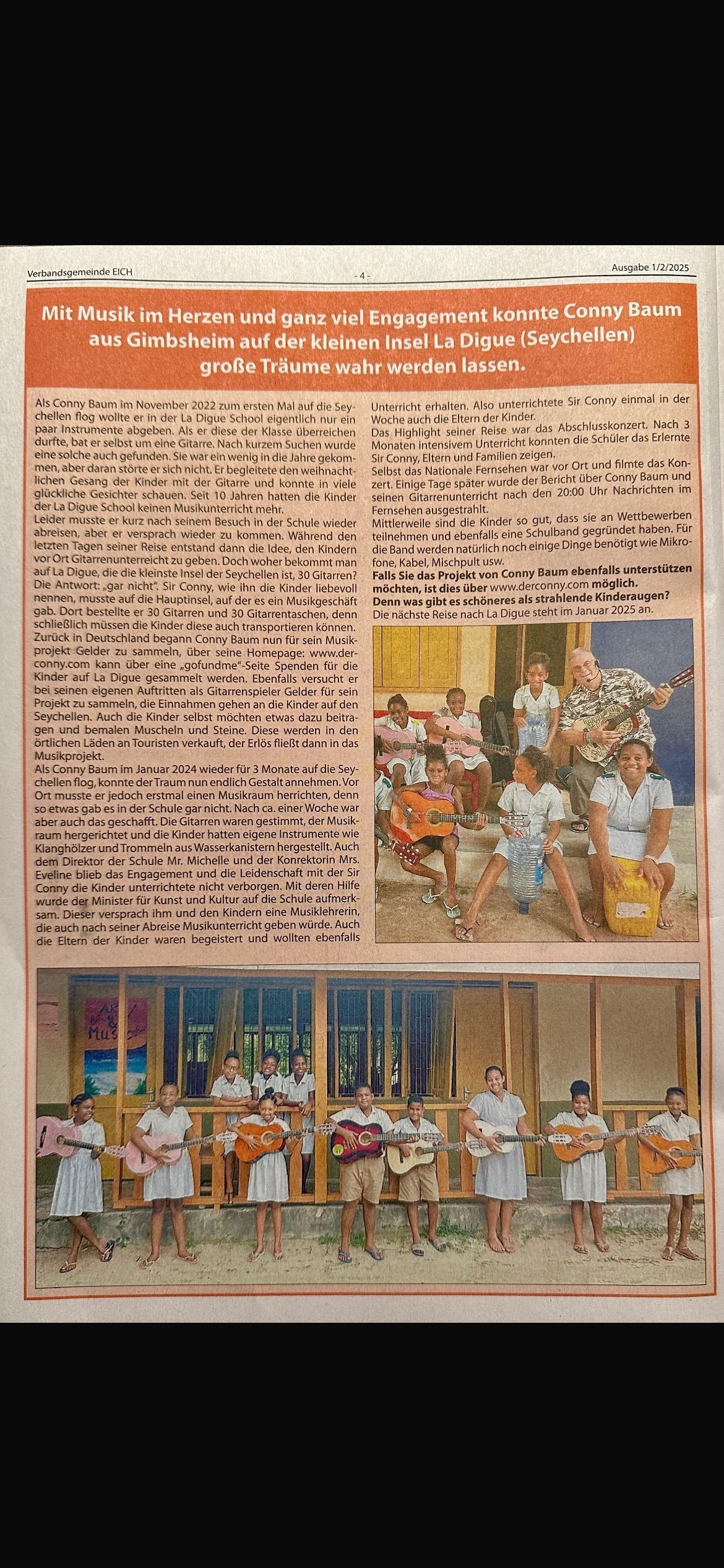 Ab April 2023 gab ich dann Miss Eveline einmal wöchentlich per Videokonferenz Gitarrenunterricht, damit sie auch nach meinem Abreise nachhaltig das Projekt weiterführen kann. Mit der gleichen Zielsetzung stand die Schulleitung ab Oktober 2023 mit der Hauptinsel in Verhandlungen, dass spätestens bis zu meiner Ankunft im Januar eine neue Musiklehrerin eingestellt werden soll.